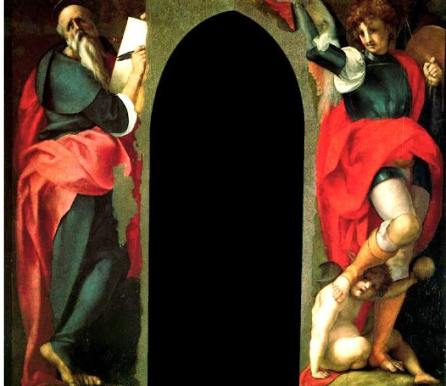 desde 1546, Pontormo trabajó durante diez años - hasta la muerte - la decoración del coro de la iglesia de San Lorenzo, que fue la iglesia principal de la familia Medici. A la muerte de Pontormo, Bronzino, se completa con su alumno un poco más joven, y su fiel amigo por muchos años. Los frescos se habían perdido en 1738, a raíz de la reorganización del coro.